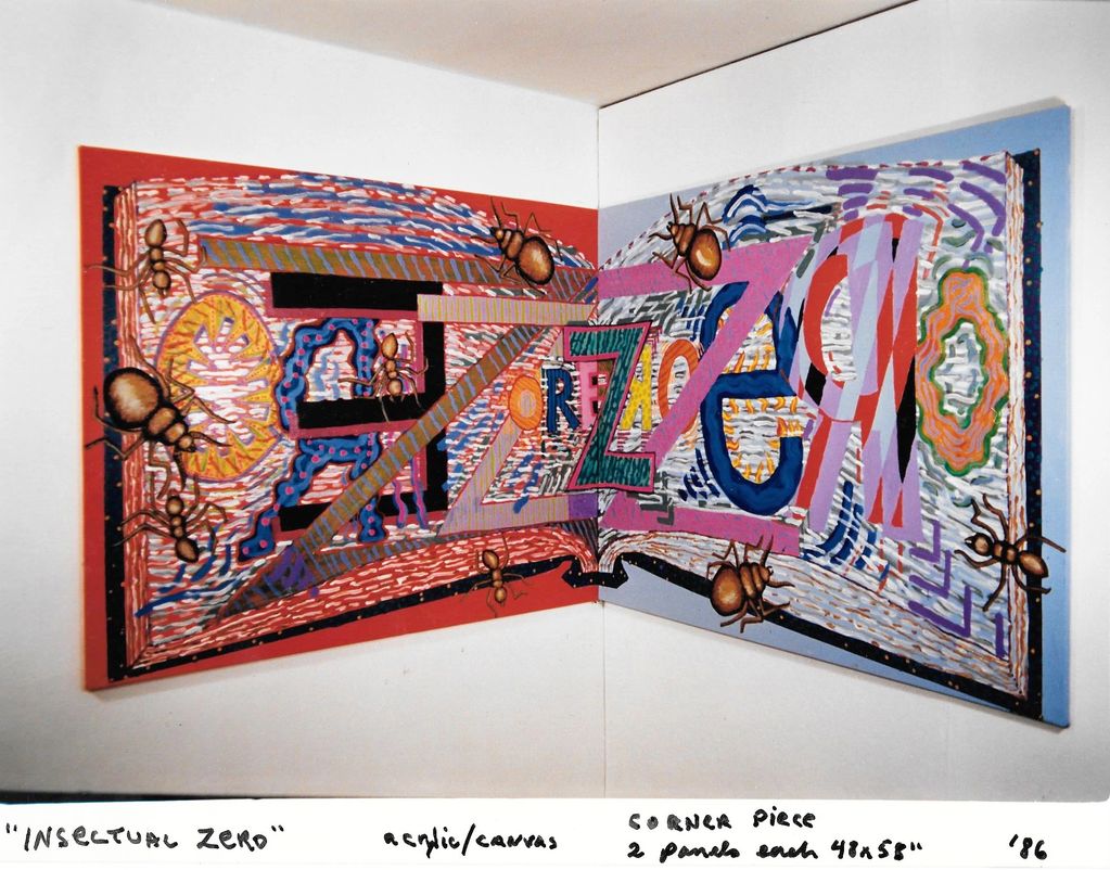 Insectual Zero, '86, Acrylic Canvas 48 x 58 inch two panels, Copyright Christopher Sharits